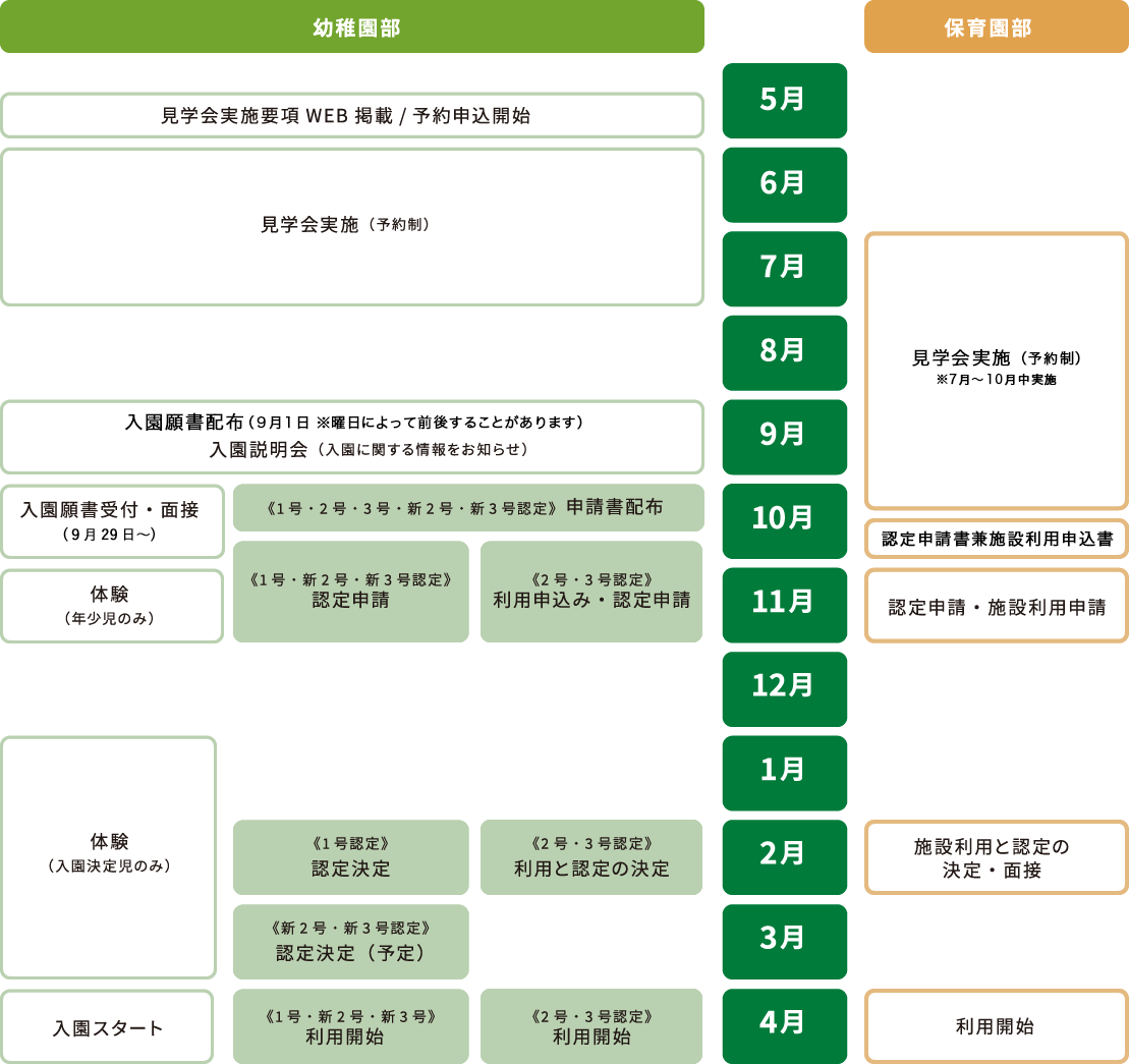 | 3歳児(3年保育) | 2022年(令和4年)4月2日~ 2023年(令和5年)4月1日生まれ |